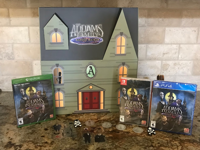 I was excited about this post because I thought that it would be fun for all of you to see the picture of the Addams Family mansion on our main page so that you could click to learn about the contents! I don't know about you, but when I look at the photo, I can't help but hear snapping fingers and the theme song in my head. In today's post, I'll tell you about the contents - Addams Family Mansion Mayhem Video Games available on Nintendo Switch, PS4, Xbox, and PC! We'll also share a a fabulously time giveaway where you will be enter for a chance to win your own spooky PC download of this game.
