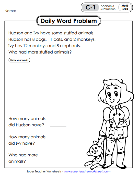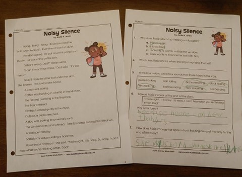 There are Reading Comprehension worksheets for children in grades 1-6. You will find fiction stories, reader's theater (little plays), poems, non-fiction articles, biographies, short passages, and read-aloud practice. The child will read the story/poem/passage and will then answer different kinds of questions, work on vocabulary, and also have opportunity for some creative writing of their own.