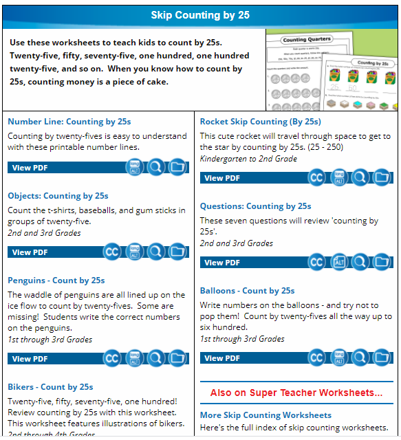 What's really awesome, is that you can use the site for free, though you won't have access to the full collection of worksheets. As shown in the screenshot below, the site indicates which worksheets you have access to with the "free" icon.