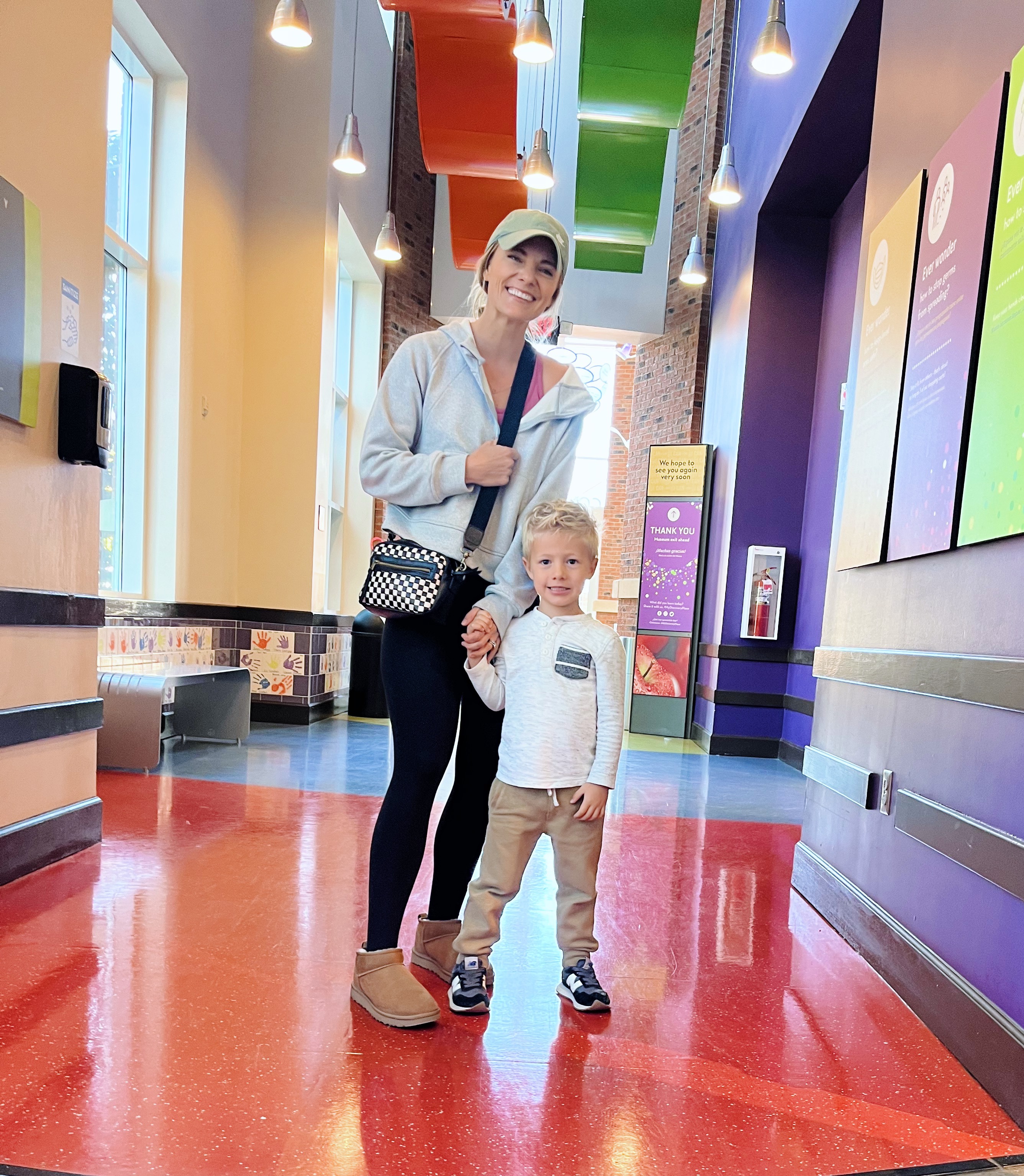 (Hoodie: Amazon — the same one I blogged about in tan last month. I’ve been wearing it so much that I ordered it in gray, too. / Hat: Nike / Leggings: Lululemon Align Super High Rise / Boots: UGGs / Bag: Target — sells out a lot but it’s restocked often!)