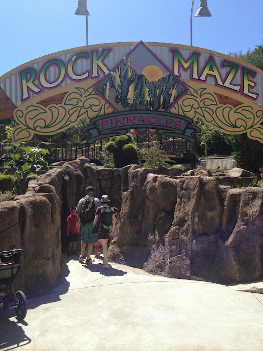 - The Pinnacles Maze. Toddler X loves this walk-through (or, for him, run through) maze, with paths twisting and turning among high rock walls and tunnels to get to the exit. A big, huge caution here: it is EASY to lose a quick-moving toddler in the maze -- Mr. X is pretty fast, but even he had a tough time staying right behind our darting little guy. Fortunately there are only two entrances, and there's actually a bridge where you can look down from above if it comes to that, but just be aware that when your toddler heads into this maze at full speed, it won't always be easy for you to follow.