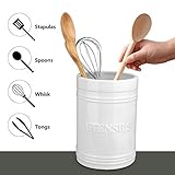 Renawe - Best ceramic utensil holder with sponge holder made of premium ceramic more durable and heavy lead and cadmium free Large utensil holder 7 inch height x 5 inch diameter help you organize more cooking utensils and kitchen tools it will release the space of your drawers Microwave oven and dishwasher safe Engraved utensils word by craftsmen