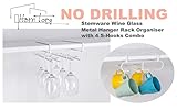 “N/A” - Functional flexible with 4 multipurpose shooks this rack not only hangs wine glass but also mugs utensils kitchenware anything with a hole can be hooked through It looks great and keeps your stemware ready to go for gatherings Premium quality lightweight 100 brand new and made of durable matte metal with highgraded coating design Meticulous craftsmanship superior product quality rustresistant light weighted No drilling easy to install this organizer is easy to install and remove just slide it on the shelf of your bar or cabinet No screw needed thus keep your cabinet away from drill holes With durable construction the rack is easy to clean and will last a lifetime