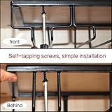 Simple installation each glass rack with holescomes with the mounting hardware it can be easily installed in a few minutesYou only need to use a screwdriver to screw the provided screws into the wood of the cabinet Duable quality the stemware holder under cabinet is made of highquality iron and is designed with highgrade coating It can effectively prevent the wine glass rack from oxidizing and rusting The quality of the sturdy iron material is durable and dependable keeping your stemware chipfree is no longer a hassle