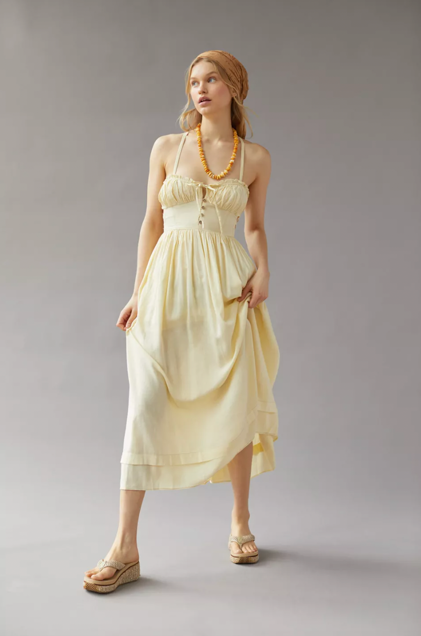 Urban Outfitters Cora Linen Open Back Midi Dress, $, available at Urban Outfitters